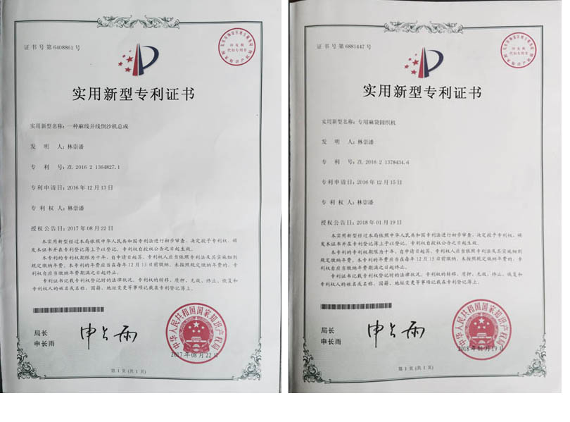 WENZHOU DINGGAO SACK CIRVULAR LOOM MACHINERY CO.,LTD developed a new set of sack circular loom equipment after many years of research. The machine NO.SJ-K740, owning China's intellectual property patent, (patent number: 201621378434.6), is the most advanced sack weaving equipment at home and abroad, 4-6 times the production efficiency of normal sack weaving machine.